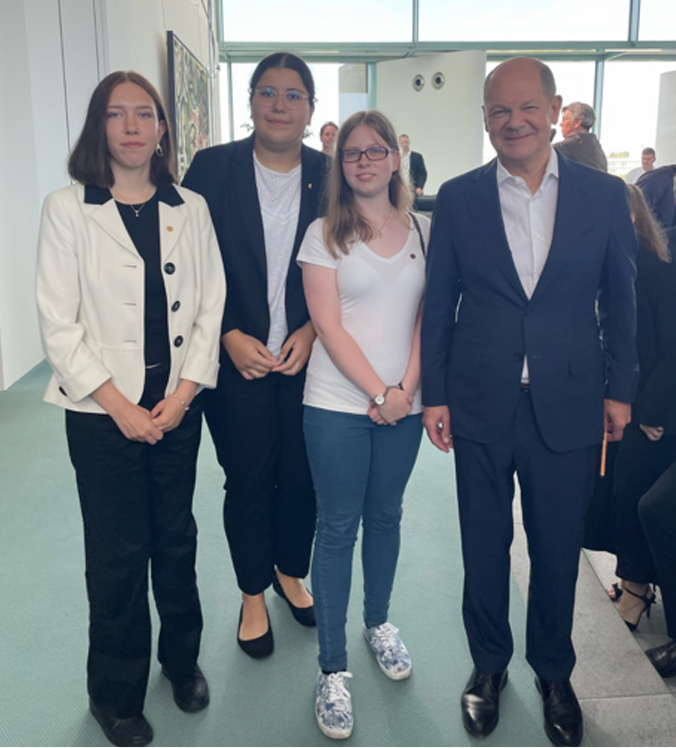 Unsere Siegerinnen des 58. Bundeswettbewerbs “Jugend forscht” beim Treffen mit Bundeskanzler Olaf Scholz