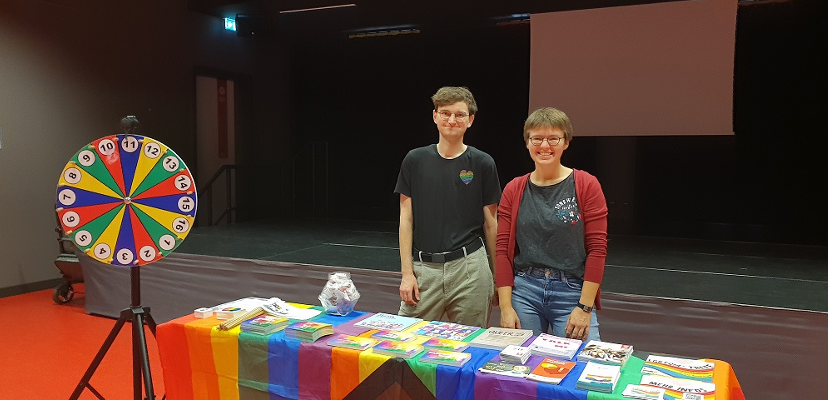 Anlässlich des internationalen Coming Out Days lud die Gustav-Heinemann-Schule Vertreter*innen des Jugendbildungswerk des Kreises Groß-Gerau sowie der Fachstelle queerformat der Beratungsstelle pro familia zu einem gemeinsamen Aktionstag am 11.Oktober 2023 ein. Die Schüler*innen der GHS konnten sich in diesem Rahmen mithilfe der Comic-Ausstellung „Ach, so ist das?!“ mit der Lebenswelt queerer Personen auseinandersetzen und sich darüber austauschen.