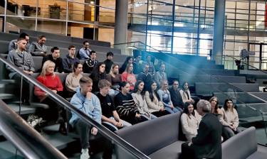 DDR. Daran anschließend fand eine gemeinsame Auseinandersetzung über Bedingungen von Diktatur und Demokratie statt. Eine Stadtführung zur Vergangenheit, Gegenwart und Zukunft der Hauptstadt mit dem Schwerpunkt Bauvorhaben, Architektur und Stadtplanung rundete das Programm ab. Vom Humboldtforum ausgehend konnten die Schüler*innen die Hauptstadt