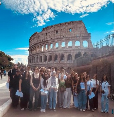 Die Kursfahrt des LK Informatik und den GK PoWi nach Rom war ein unvergessliches Erlebnis voller Kultur, Geschichte und Gemeinschaft. Zusammen mit Frau Brodzik und Frau Wahl besichtigten wir beeindruckende Sehenswürdigkeiten wie das Kolosseum, den Petersdom und die antiken Ruinen des Forum Romanum. Neben spannenden Führungen blieb auch Zeit, die italienische Lebensfreunde bei Pizza, Gelato und Spaziergängen durch die engen Gassen zu genießen.
