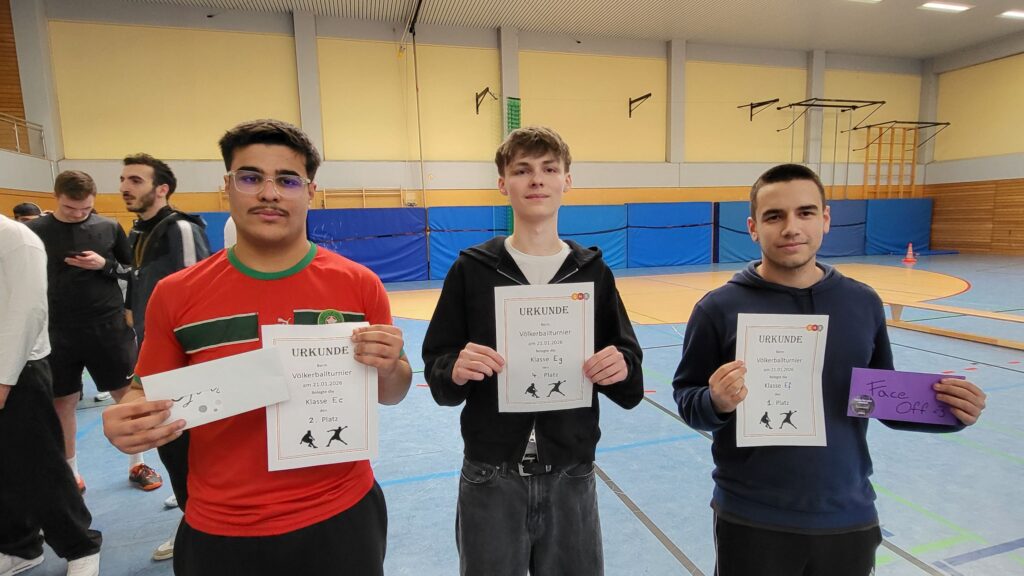 Am 21.01.2026 fand das Völkerballturnier in der Sporthalle statt und war insgesamt sehr gut besucht. Viele Klassen und Kurse nahmen teil und sorgten für eine laute, motivierende Stimmung. Gespielt wurde zunächst in einer Gruppenphase, in der die Teams in verschiedenen Gruppen gegeneinander antraten. In dieser Phase ging es darum, möglichst viele Spiele zu gewinnen, um sich für die nächste Runde zu qualifizieren.