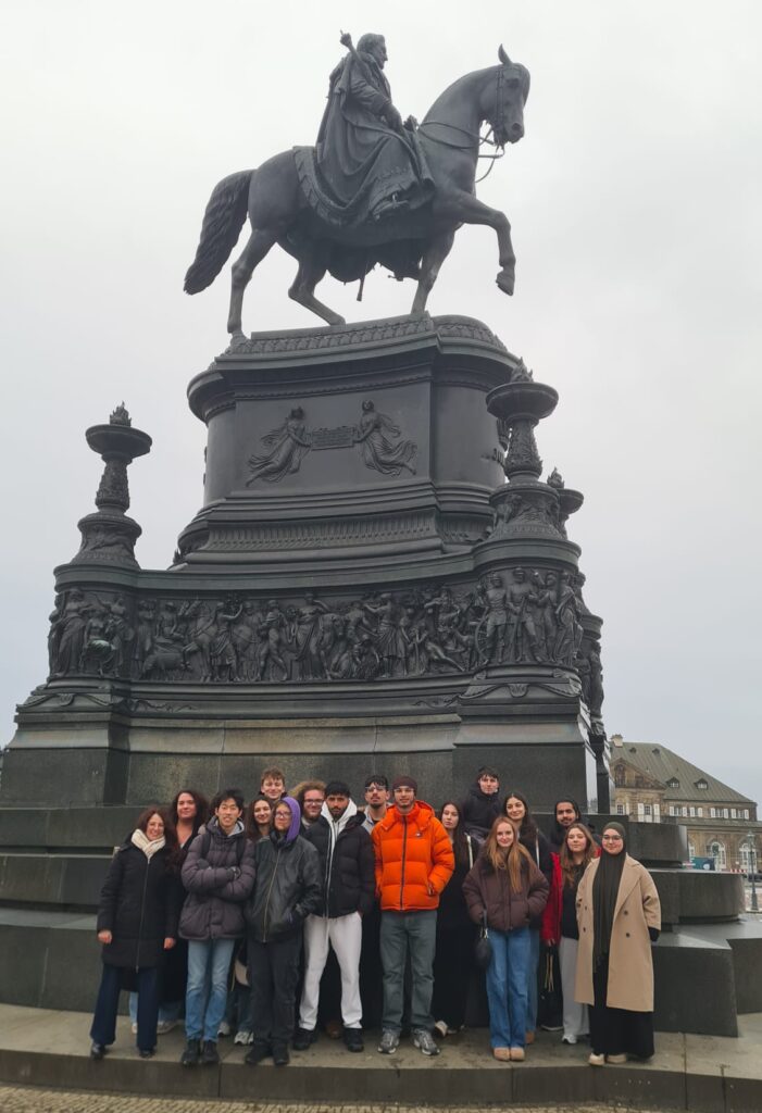 Wir, die Klasse Ej, waren ebenfalls vom 28.-30.01.26 in Dresden. Wir haben die Klassenfahrt mit einem geführten Stadtrundgang gestartet, dabei haben wir u.a. den Zwinger gesehen. Am nächsten Tag ging es hoch hinaus auf die Kuppel der Frauenkirche und in den Regenwald im Panometer. Dort wurden uns ebenfalls viele interessante Infos zu Flora und Fauna nähergebracht. Bei einem Workshop von der TU Dresden am letzten Tag haben wir zu OLED-Bildschirmen und Flugzeugmotoren- und Materialien experimentiert.